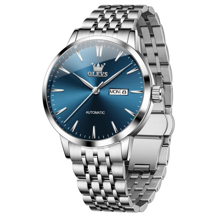 OLEVS 7048 Men Diamond Dual Calendar Mechanical Watch(Blue)