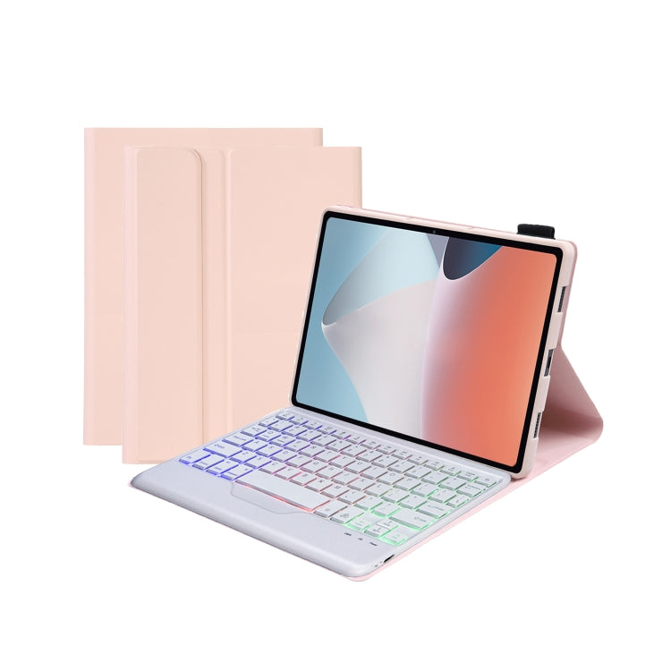 OP12-BS Lambskin Texture Ultra-thin Bluetooth Keyboard Leather Case with Backlight For OPPO Pad Air 10.4 inch(Pink)