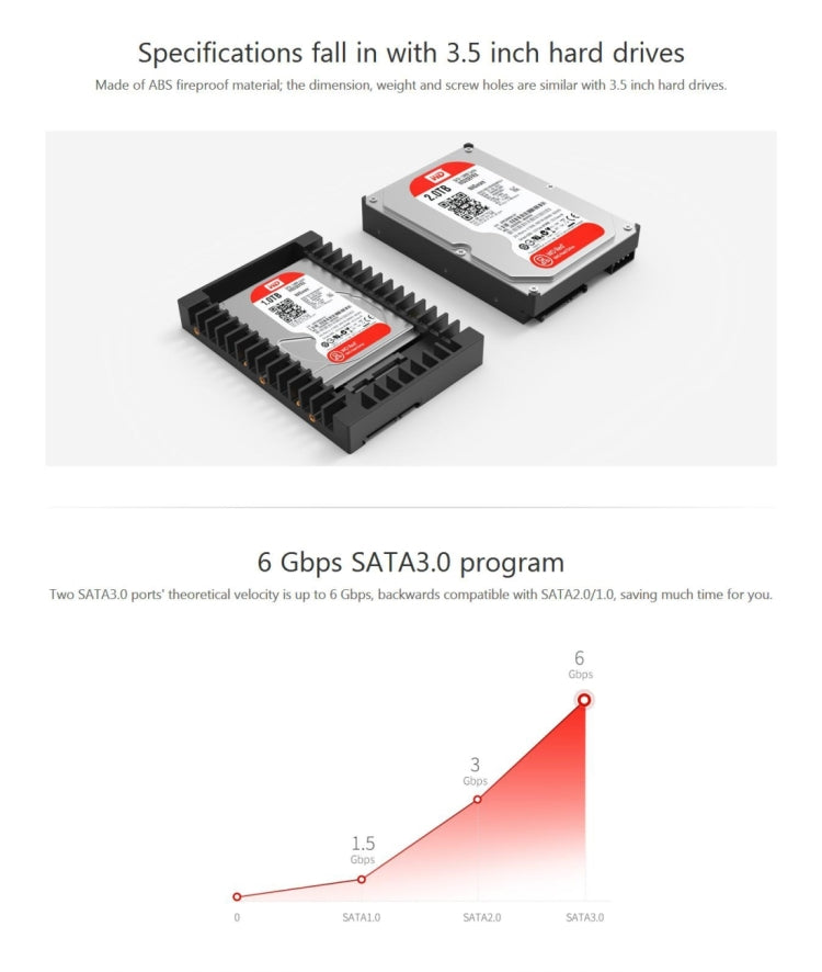 ORICO 1125SS SATA 3.0 Fast Transfer Speed 2.5 to 3.5 inch Hard Drive Caddy / Convertor Enclosure(Black)
