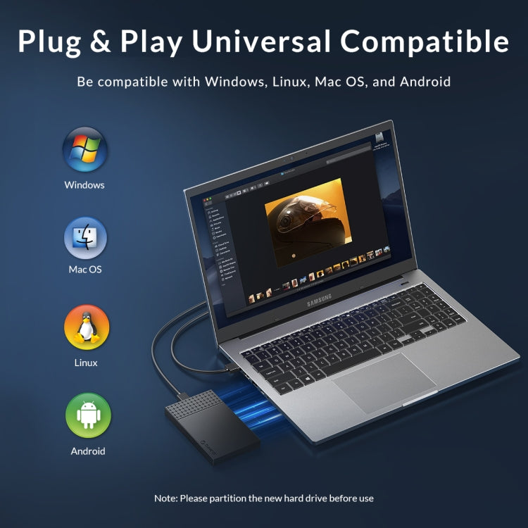4. Auto-Sleep: Portable 2.5 inch hard drive enclosure with tool-free design, slide cover disassembly, plug and play, no need to install drivers; with intelligent sleep function, the hard disk is more durable (hard disk 10 minutes without Operation, it will automatically stop spinning, enter the sleep state) energy saving and environmental protection, and improve the service life of the hard disk.
