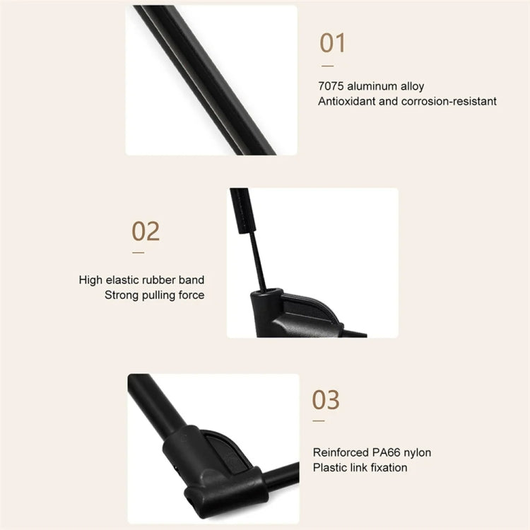 5. 7075 aluminum alloy, anti-oxidation and corrosion resistance, high elasticity rubber band, strong tension, nylon plastic connection fixed