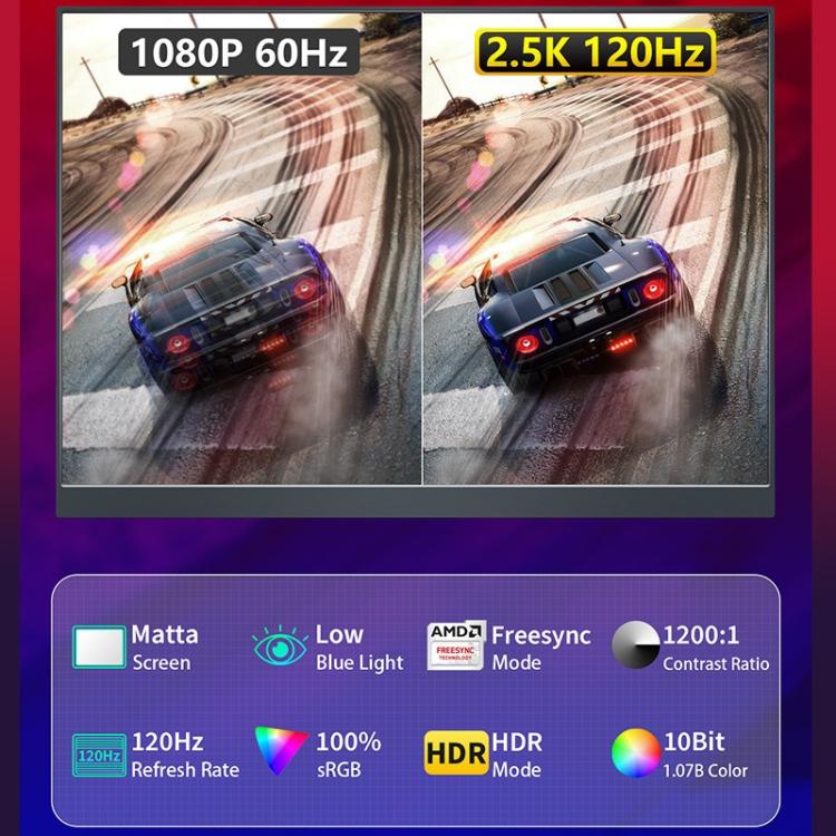 P160Q16BWG 16 inch 2.5K Portable Monitor 120Hz Gaming Extended Screen(Black)