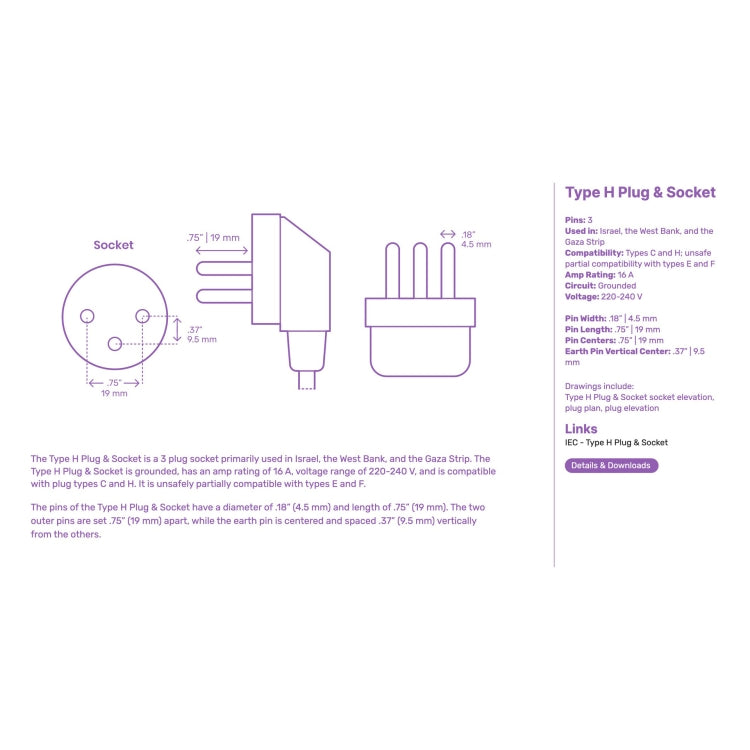 PC Panel Duplex Israel Three-Hole Wall Power Socket(Y Shape Double Plug)