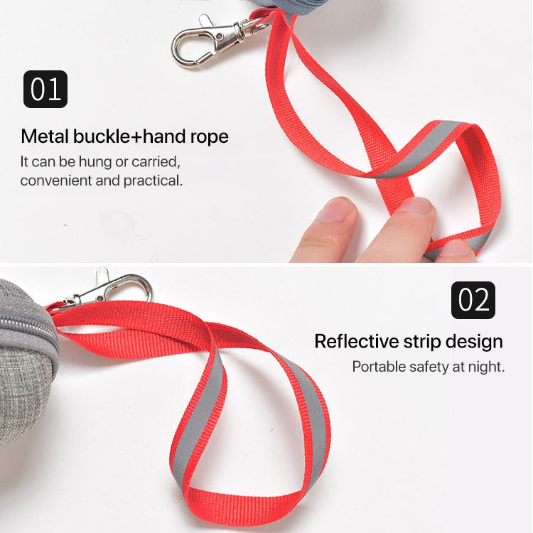 5. Features: metal hanging buckle + hand strap, can be hung and portable, easy to store and carry, reflective strip design, safer to use at night, zipper opening, convenient to put garbage bags, metal cut, round and smooth, easy to take out the bag