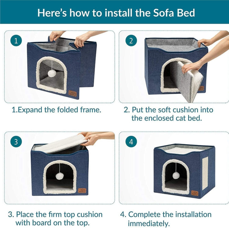 Pet Stool Pet Kennel Indoor Foldable Storage Stool Cat Dog Kennel 41 x 41 x 35cm(Navy Blue)