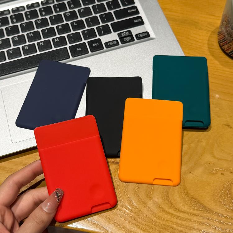 Phone Back Sticker Liquid Silicone Card Bag(Orange)