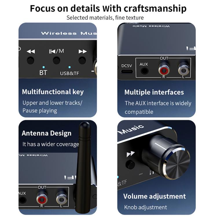 Portable Bluetooth Receiver Audio AUX Adapter Supports USB Disk, TF Card With Remote Control(Black)