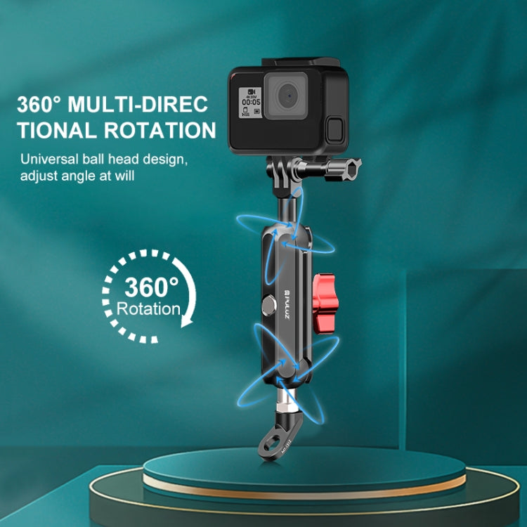 PULUZ Motorcycle Rearview Oblique CNC Metal Magic Arm Rod Mount