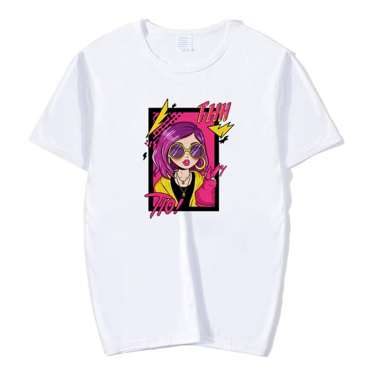 Purple Hair Girl Printed Round Neck Modal Short Sleeve T-shirt Print On Your Demand, Size:M(White)