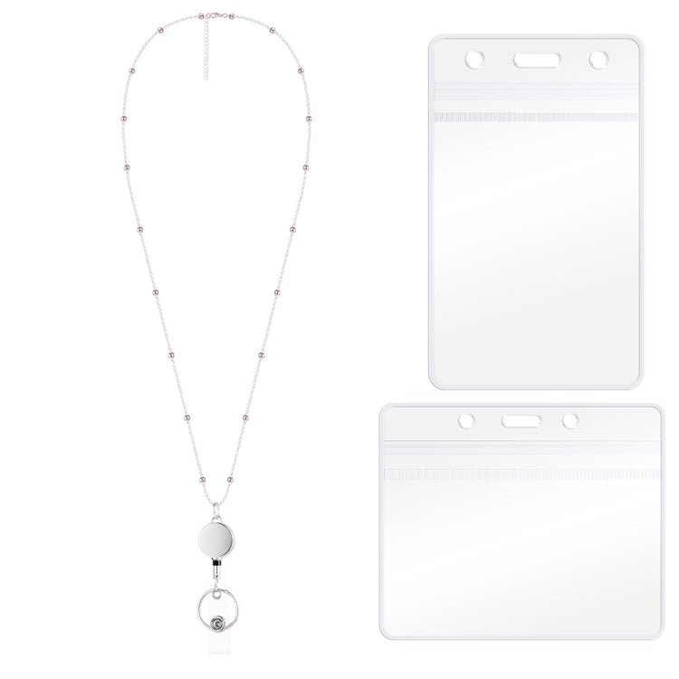 QD-2451 Multifunctional Metal Bead Chain Retractable Pulling Buckle ID Card Holder(Silver)