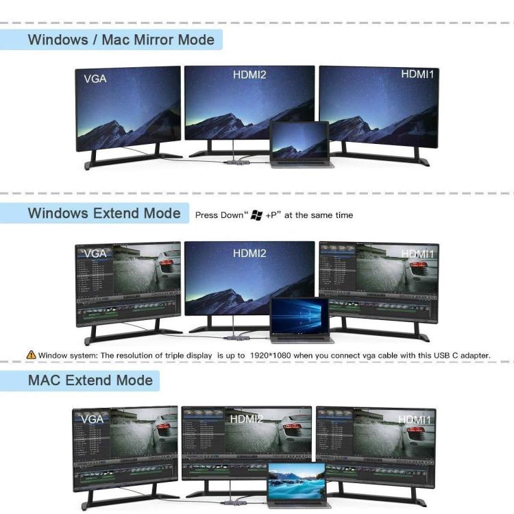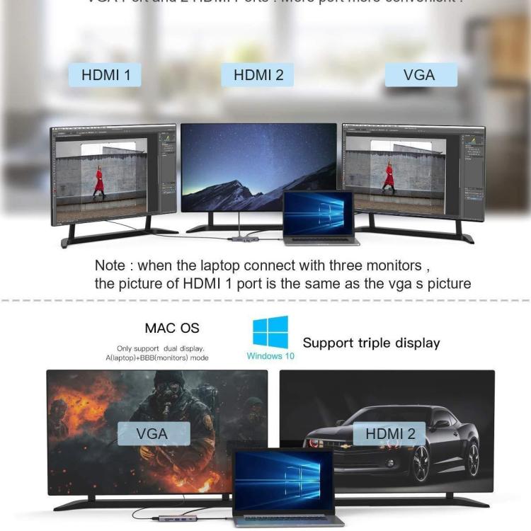QGeeM 9 In 1 USB-C/Type-C Docking Station Hub VGA+2xHDMI+PD 87W+USB2.0/USB3.0+SD/Micro SD+3.5mm