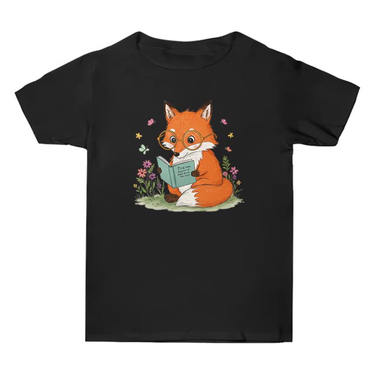 Reading Fox Printed Summer Baggy Cotton Short Sleeve T-shirt Print On Your Demand, Size:L(Black)