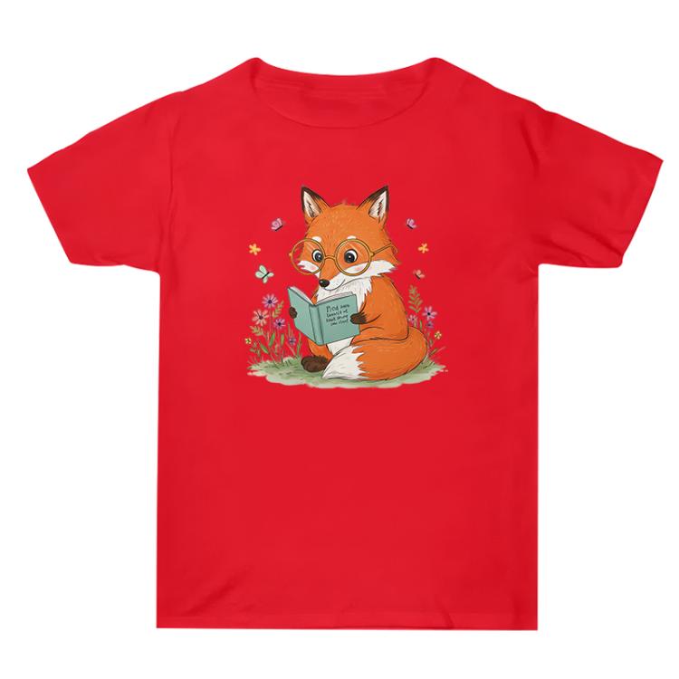 Reading Fox Printed Summer Baggy Cotton Short Sleeve T-shirt Print On Your Demand, Size:XXL(Red)