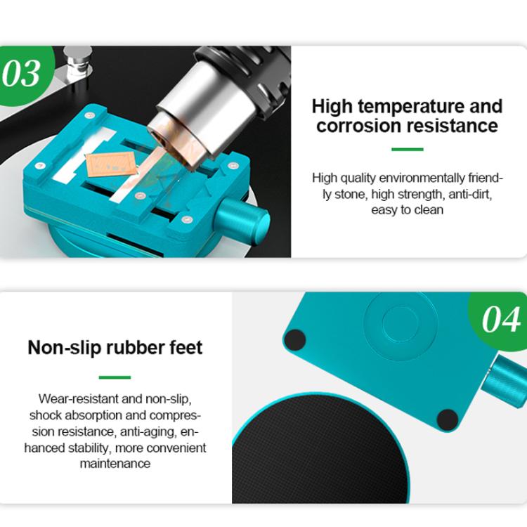 2. 360-degree all-round controllable and detachable turntable, rotating base makes maintenance easier, suitable for motherboard maintenance, chip degumming, etc.