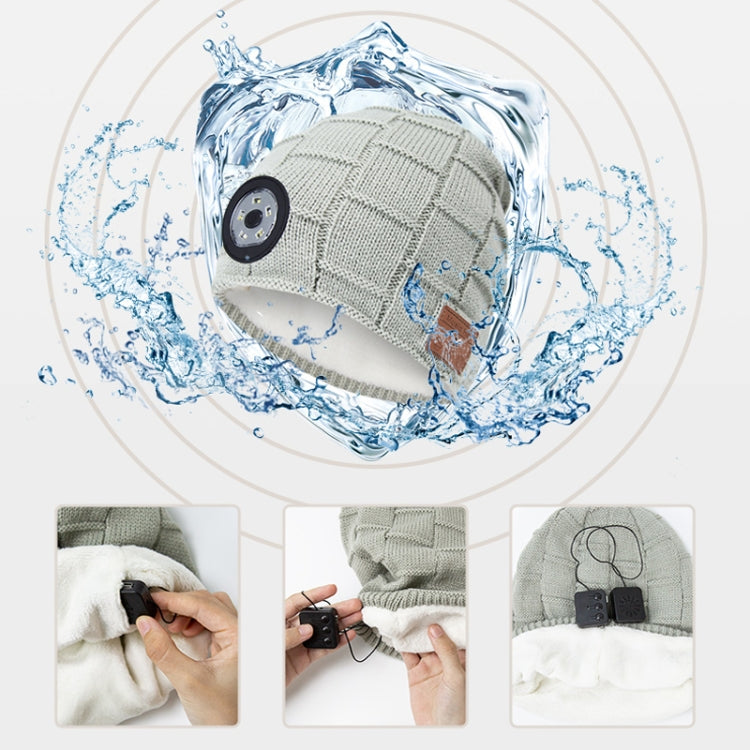 RG5-BL Bluetooth LED Lighting Music Knit Hat Plus Velvet Night Running Lamp Hat(Black)