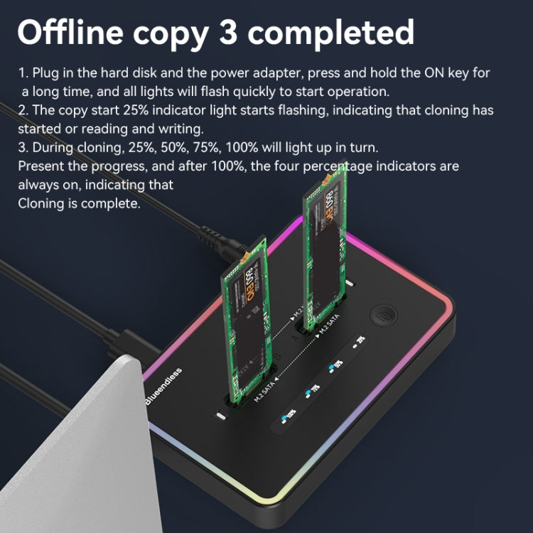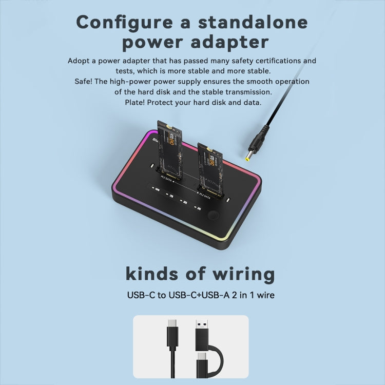 RGB NVME + SATA Blueendless M.2 Dual-Slot Hard Drive Base Solid State Hard Drive Box, US Plug