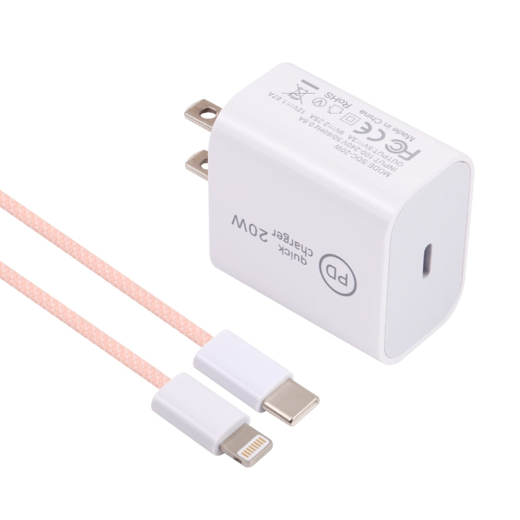 SDC-20W PD USB-C / Type-C Travel Charger + 1m 20W USB-C / Type-C to 8 Pin Data Cable Set, US Plug(Pink)