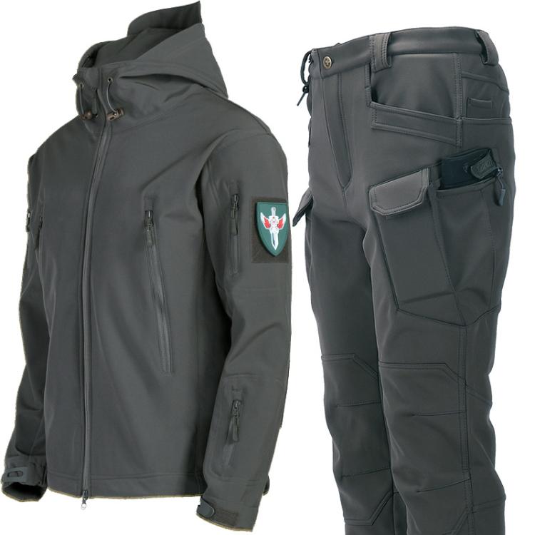 Sharkskin Softshell Fleece-lined Waterproof Windproof Cycling Hiking Suit, Size: L(Gray)