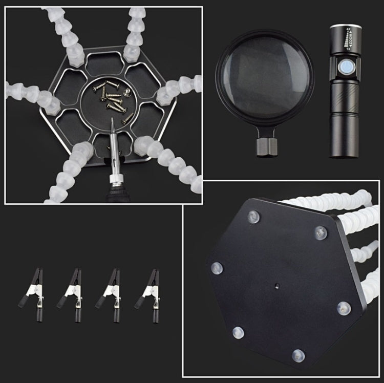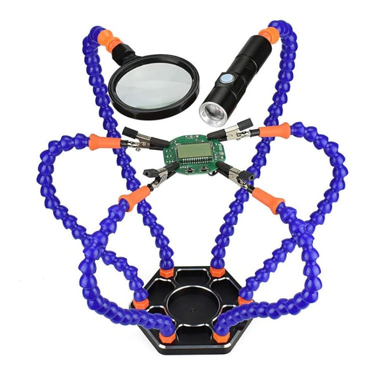Six-Jaw Aluminum Alloy Welding Station Electronic Product Welding & Maintenance Workbench, SN6SB With Flashlight (Blue)
