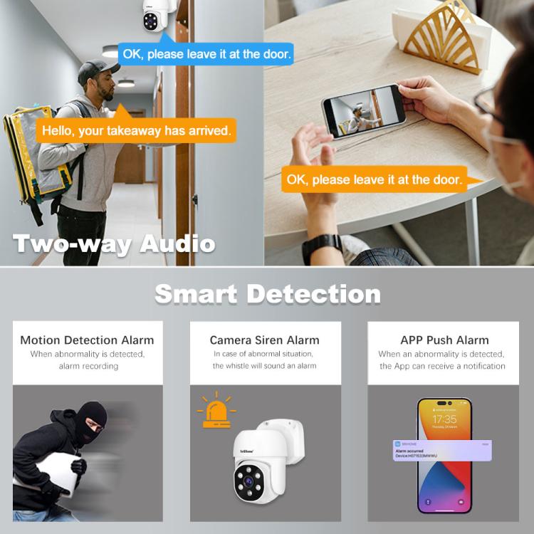 2. Built-in microphone and speaker with two-way audio support.