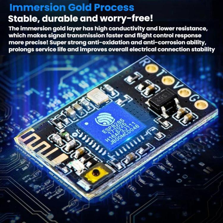 1. Immersion gold layer of high conductivity, lower resistance, faster signal transmission, more accurate flight control response, oxidation and corrosion resistance, to enhance the overall stability of the electrical connection