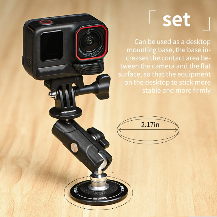 1. The magnetic universal base bracket is suitable for most sports cameras on the market, and the connector is designed with a 1/4 screw, with a (for GoPro) female head, and 6 magnets are inserted into the base. The magnetic force is strong, and it can be adsorbed on any iron object when the camera is installed, such as refrigerators, door frames, iron railings, etc., which is suitable for more scenes.