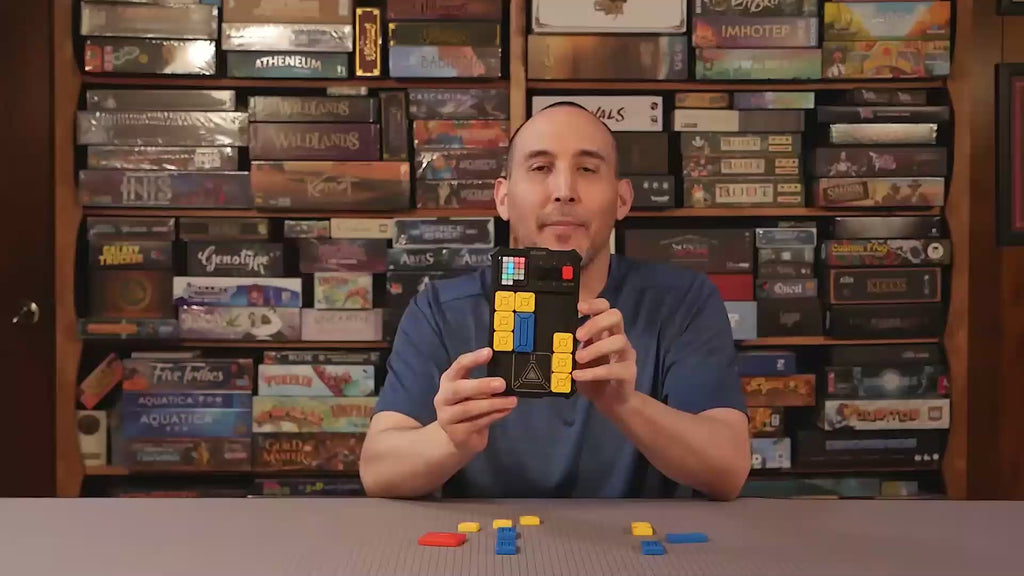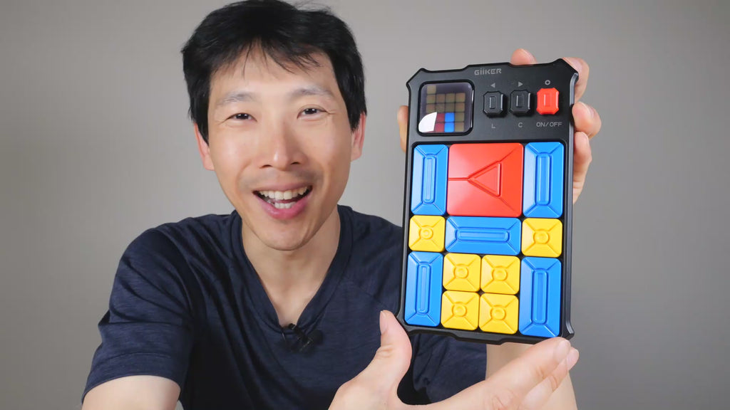 ULTIMATE GOAL - Set up the game as shown on the LED Screen, the goal is to slide the red square block to shift the big square block to the automatic detection zone which is located at the bottom middle.