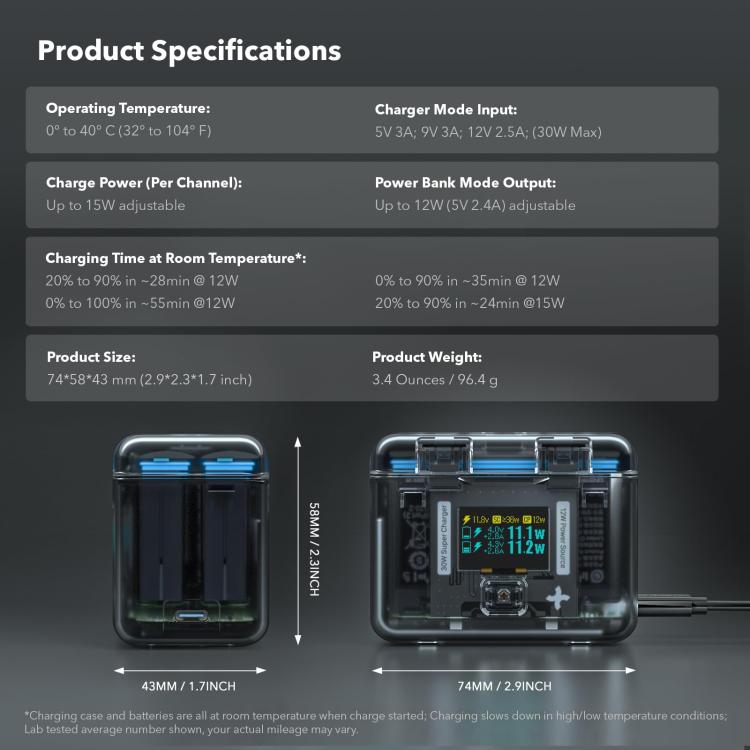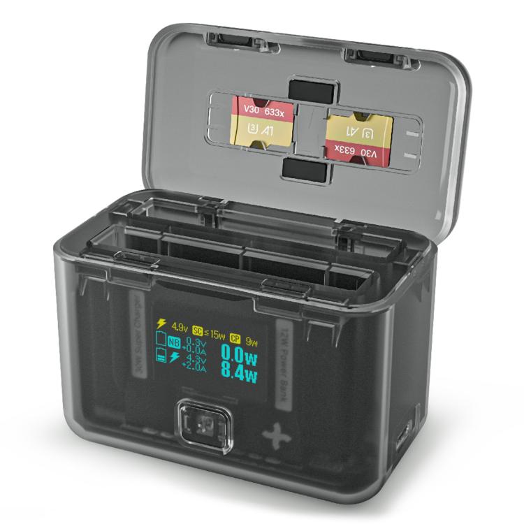 SYMIK Battery Charger For Insta360 X3 / ONE X2 Two Way Charging Case With 0.96-Inch OLED Screen(Transparent Black)