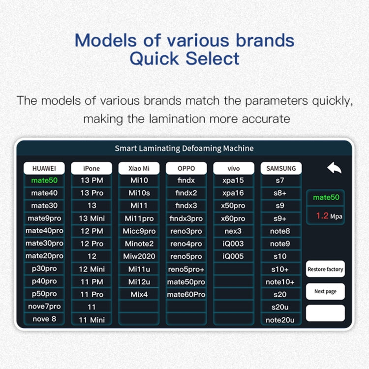 9. Models of various brands, quick select, the models of various brands match the parameters quickly, making the lamination more accurate