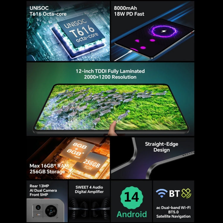 3. Max Speed at Your Fingertips: T60 is powered by the UNISOC Tiger T616 chipset, complemented by up to 16GB RAM (8GB with an additional 8GB RAM Expansion) and 256GB internal storage, expandable to 1TB with a Micro SD card.