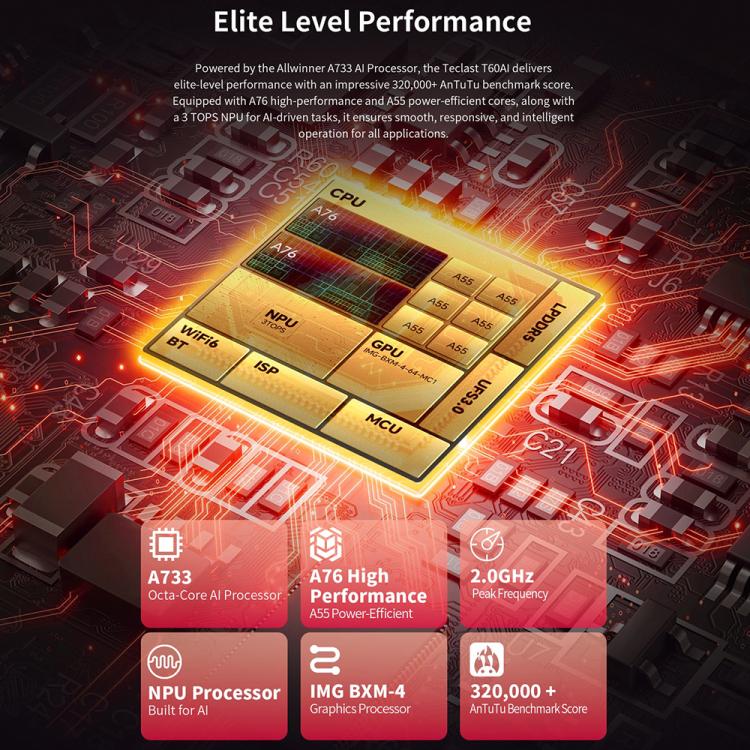 3. Equipped with the Allwinner A733 Octa-Core processor, the T60AI delivers smooth multitasking, fast response times, and energy-efficient performance for a seamless user experience.