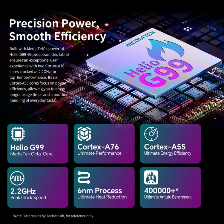 Specifications1. CPU: MediaTek Helio G99 Octa Core (2x Cortex-A75 2.2GHz + 6x Cortex-A55 2.0GHz)