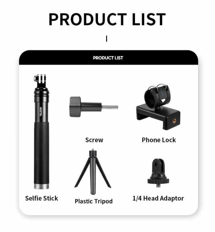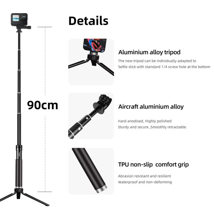 TELESIN 0.9M Selfie Stick Monopod Tripod Compatible With Action Cameras And Smartphones Plastic Tripod