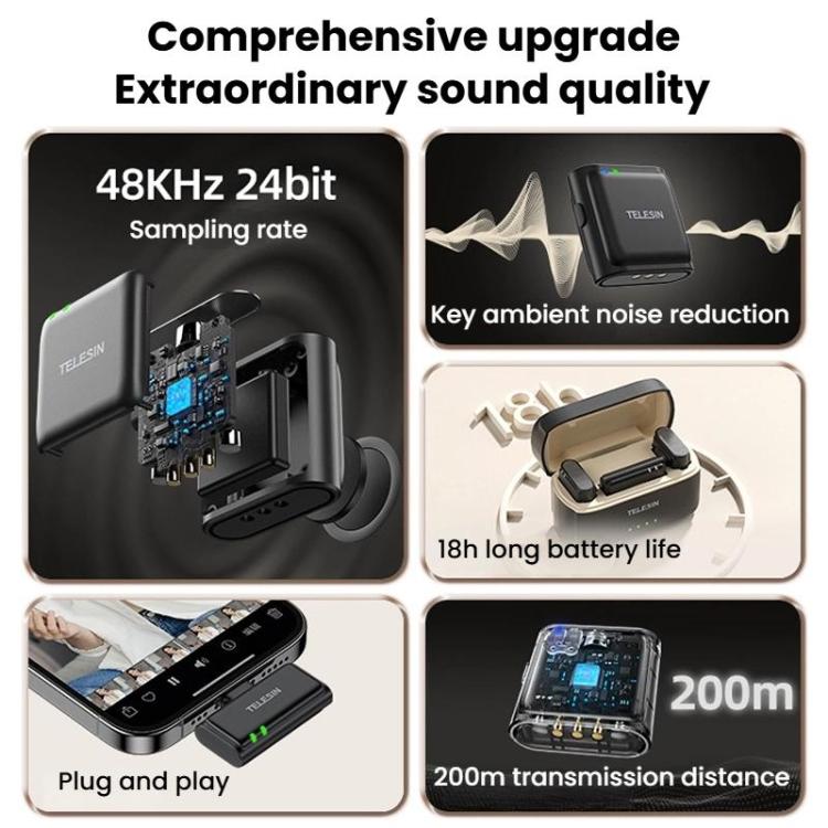 TELESIN Wireless Lavalier Microphone Noise-Canceling Magnetic Button Microphone(Black)