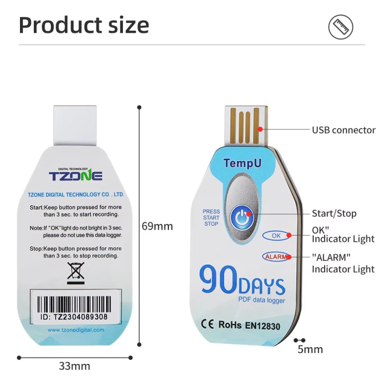 TempU Disposable Temperature Recorder For Cold Chain Transport Vehicles(30 Days)