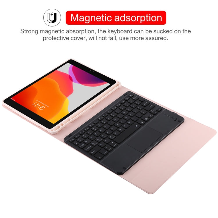 TG-102BCS Detachable Bluetooth Black Keyboard + Microfiber Leather Tablet Case for iPad 10.2 inch / iPad Air (2019), with Touch Pad & Backlight & Pen Slot & Holder (Pink)