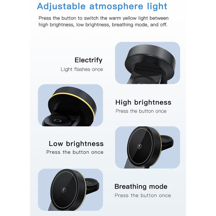 1. 3-in-1 Wireless Charging Station: Charges your smartphone, smartwatch, and wireless earbuds at the same time, eliminating cable clutter and simplifying daily charging.