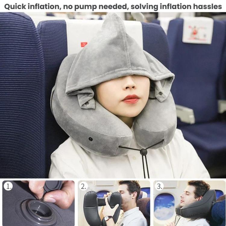 Travel H-shaped Inflatable Pillow Car Long-distance Airplane Nap Neck Pillow, Color: With Hat Gray