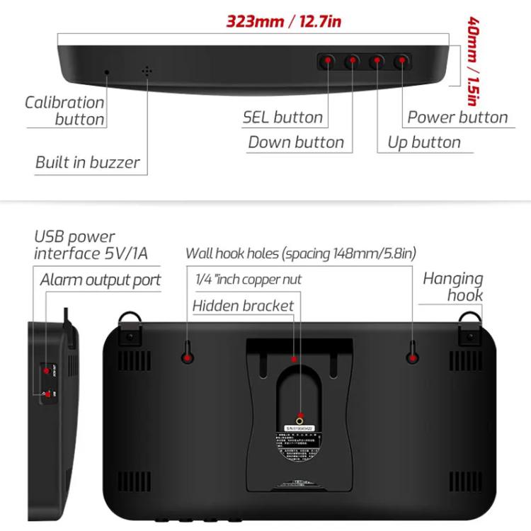 3. Upper limit alarm prompt: The upper limit alarm threshold can be set; when the measurement is higher than the set threshold, the buzzer will sound an alarm prompt, and the alarm prompt light will flash. The time can be set to: 6s~120s.