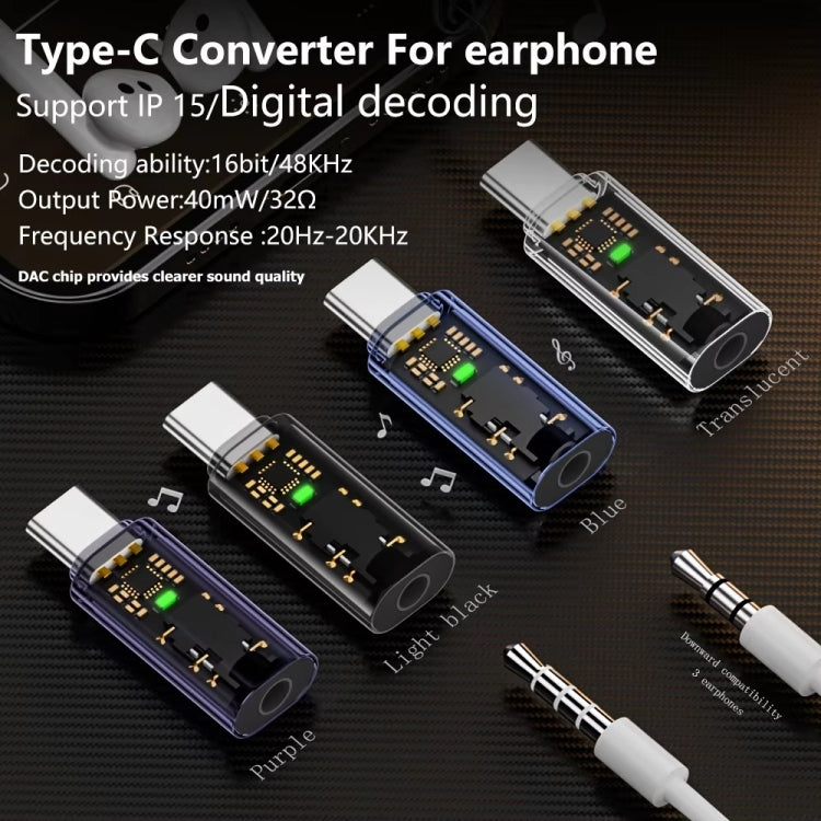 Type-C to 3.5mm Headphone Plug Conversion Adapter For iPhone 15 Audio DAC Decoding(Black)
