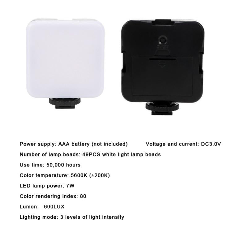 5. 3-Level Adjustable Fill Light: 49 high-CRI LED beads (5600K ±200K) with three-level brightness adjustment. Achieves 600LUX shadowless lighting with diffuser. Equipped with three hot shoe interfaces for expanded photography accessory connectivity.