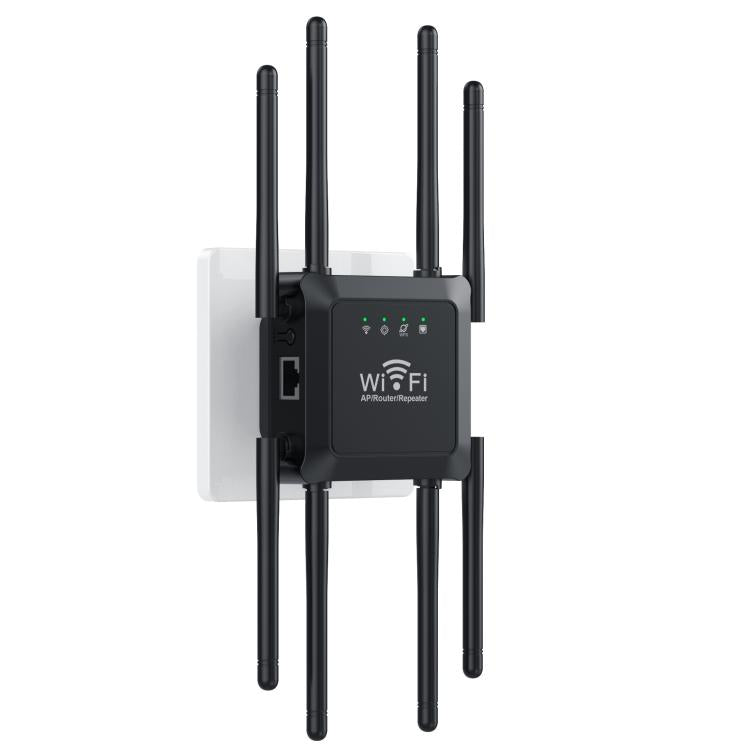 U18 1200Mbps 2.4G & 5G Wireless Repeater WiFi Signal Amplifier With 8 Antenna US Plug Black