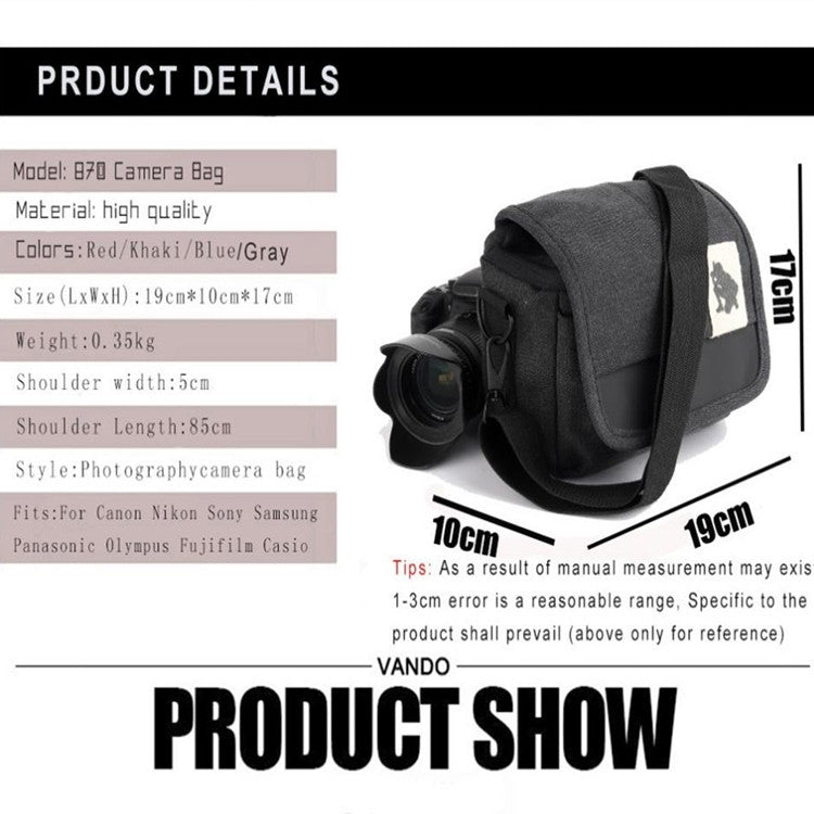 Universal DSLR Camera Shoulder Bag Canvas Photo Handbag, External size: 19 x 17 x 10mm(Black)