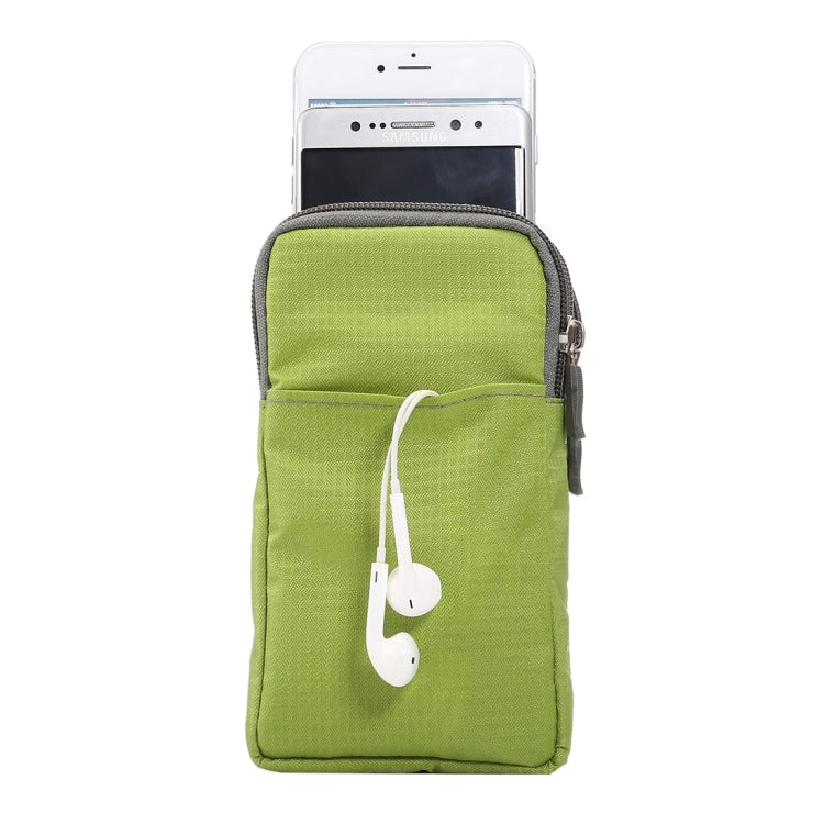 Universal Multi-function Plaid Texture Double Layer Zipper Sports Waist Bag / Shoulder Bag for iPhone X & 7 & 7 Plus / Galaxy S9+ / S8+ / Note 8 / Sony Xperia Z5 / Huawei Mate 8, Size: 16.5 x 9.0 x 3.0cm(Green)