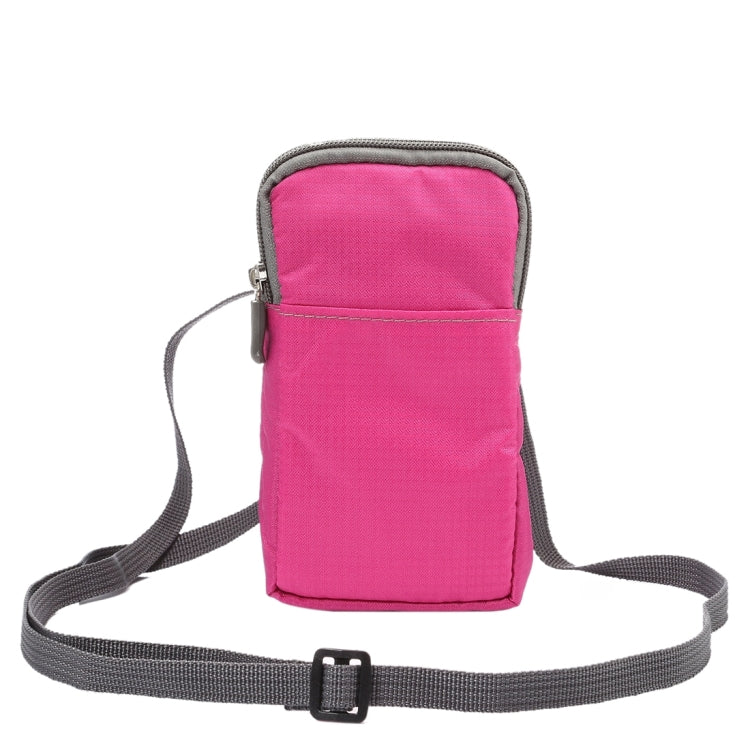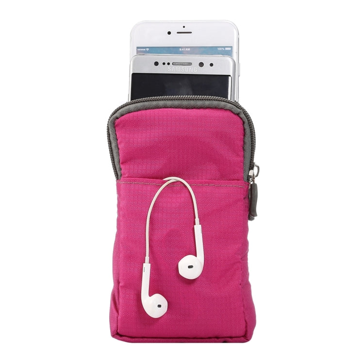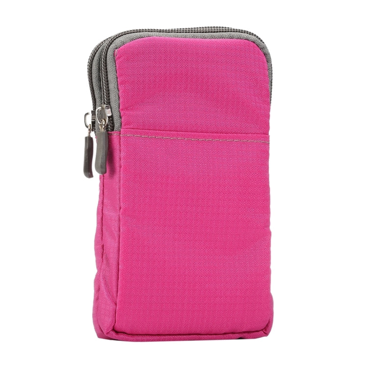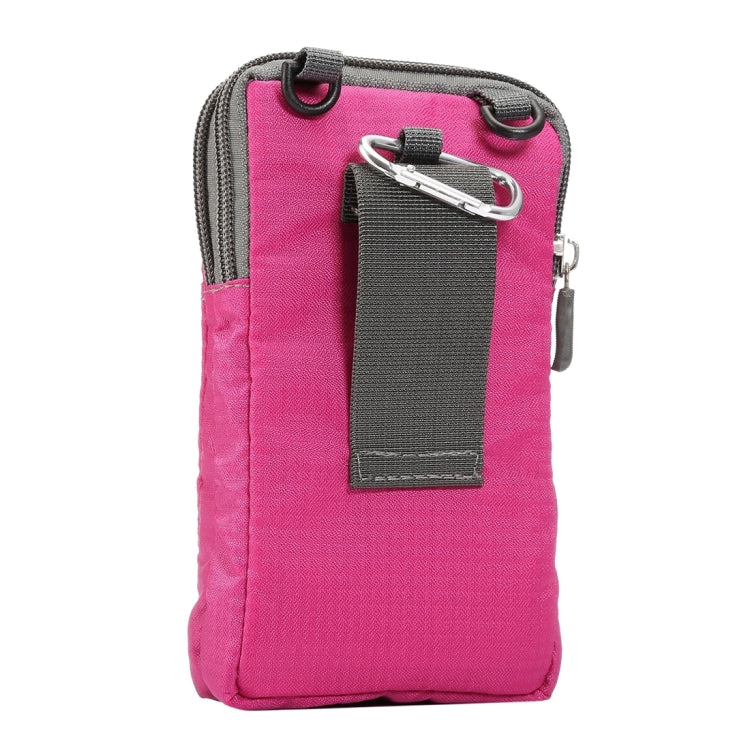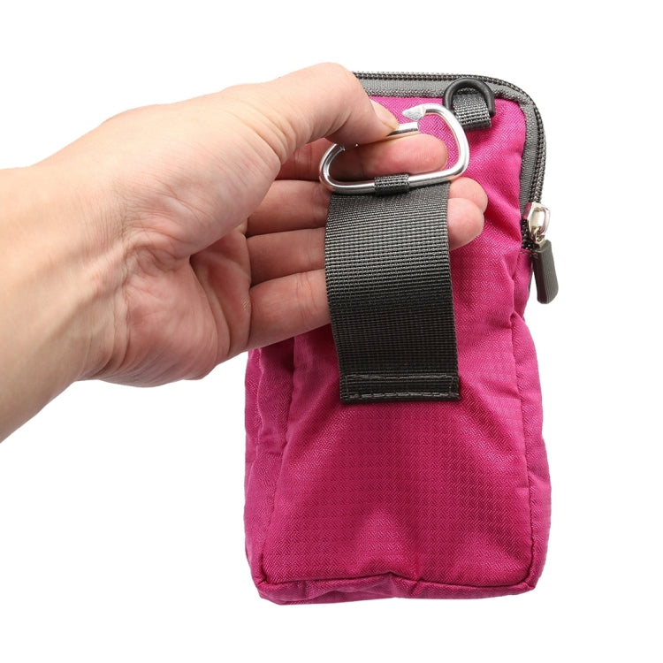 Universal Multi-function Plaid Texture Double Layer Zipper Sports Waist Bag / Shoulder Bag for iPhone X & 7 & 7 Plus / Galaxy S9+ / S8+ / Note 8 / Sony Xperia Z5 / Huawei Mate 8, Size: 16.5 x 9.0 x 3.0cm(Magenta)