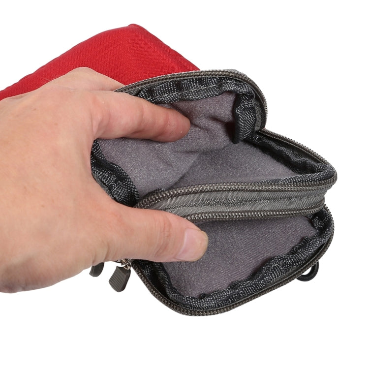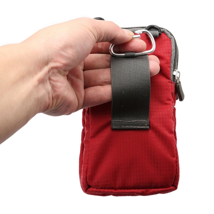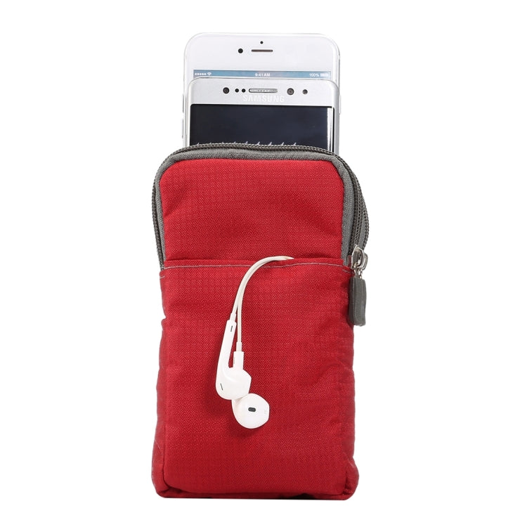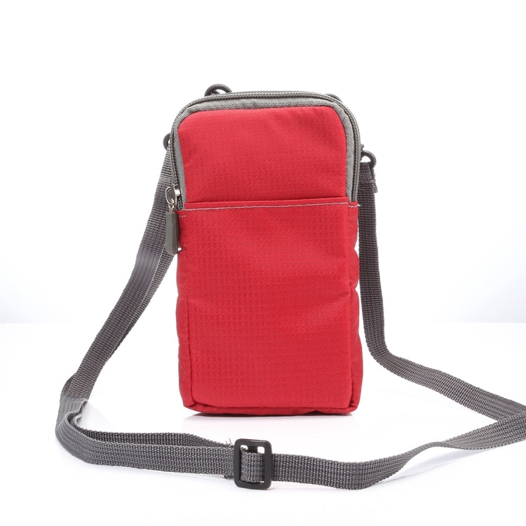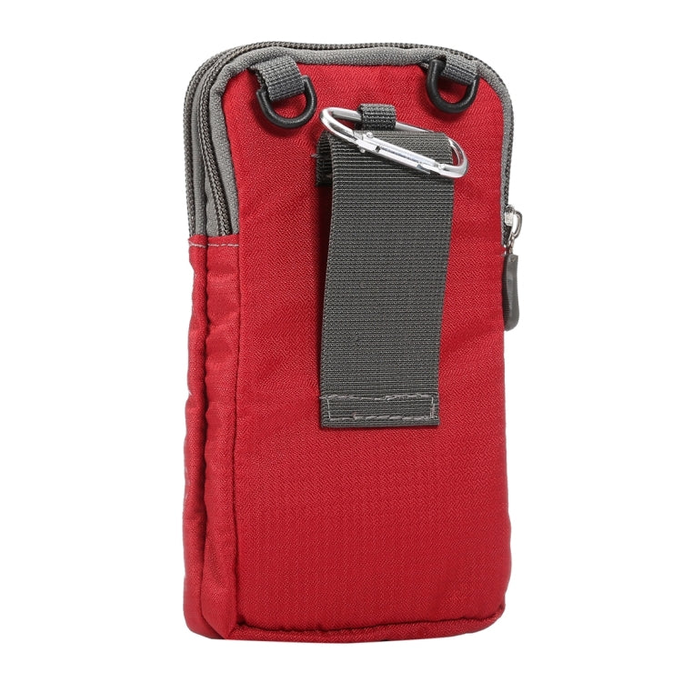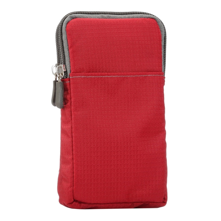 Universal Multi-function Plaid Texture Double Layer Zipper Sports Waist Bag / Shoulder Bag for iPhone X & 7 & 7 Plus / Galaxy S9+ / S8+ / Note 8 / Sony Xperia Z5 / Huawei Mate 8, Size: 16.5 x 9.0 x 3.0cm(Red)