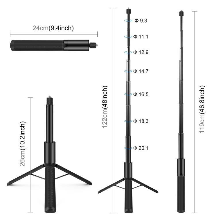 [US Warehouse] PULUZ 1.22m Retractable Invisible Selfie Stick with Tripod For Insta360 X4 / X3