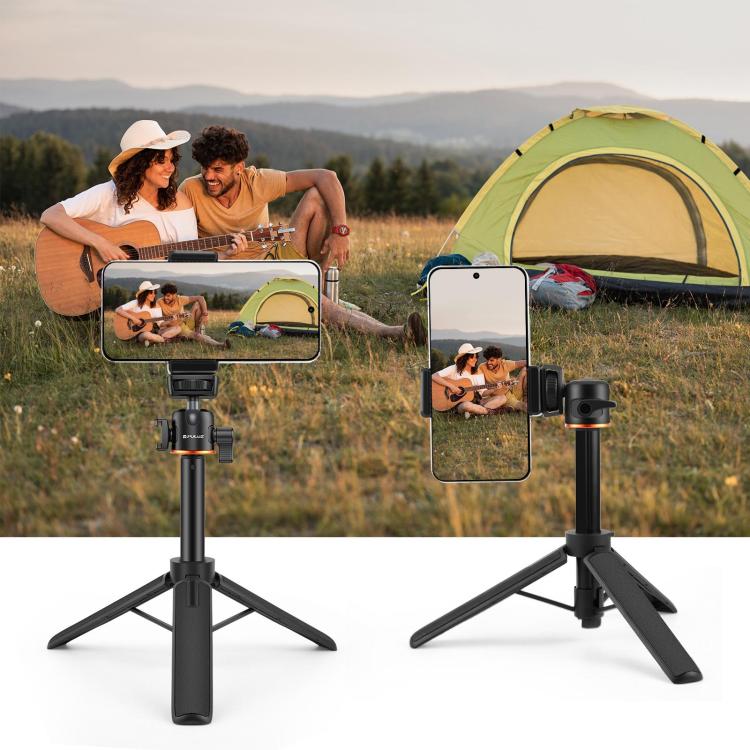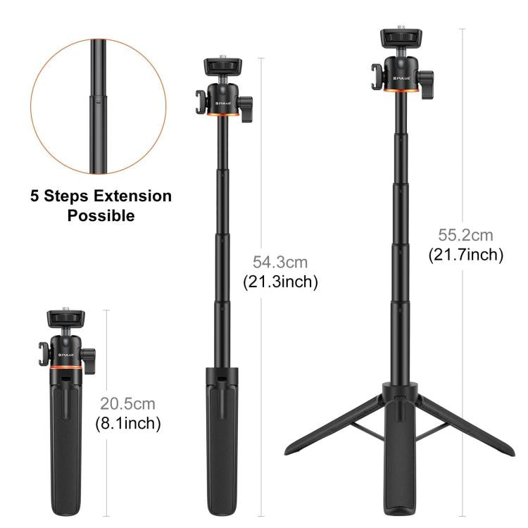 [US Warehouse] PULUZ Mini Phone Camera Extension Tripod Stand 360 Degree Ball Head Cold Shoe Selfie Stick (Black)