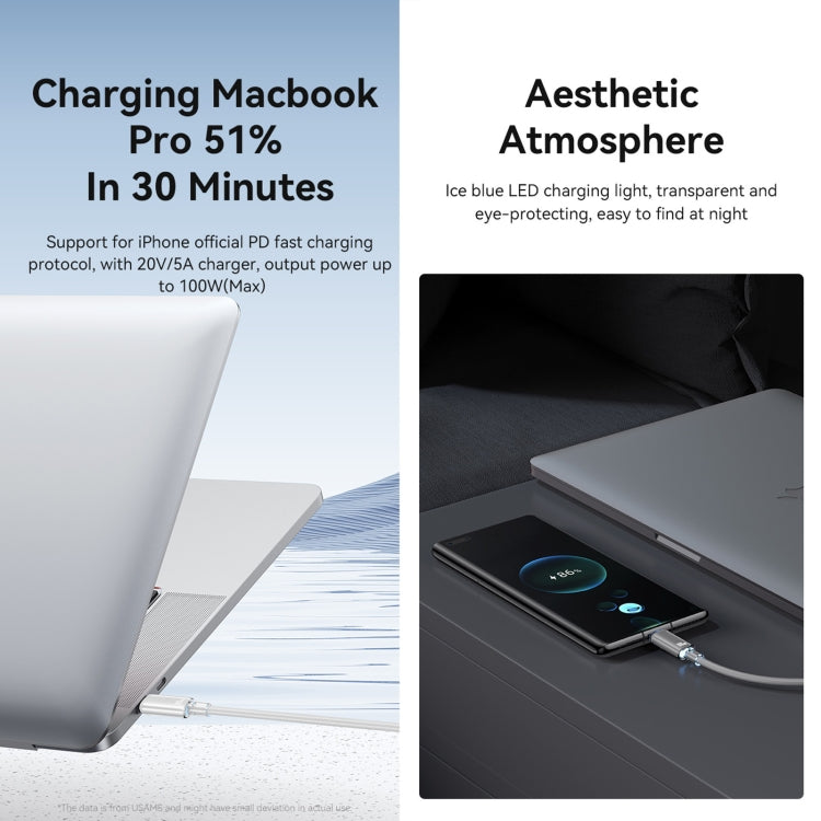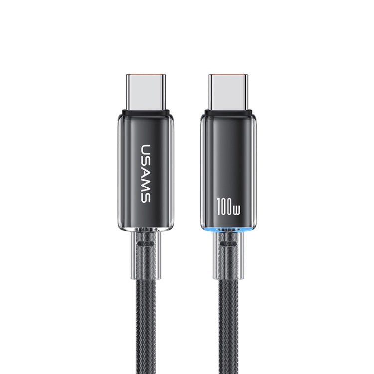 USAMS Type-C To Type-C Aluminum Alloy Clear LED 100W Fast Charge Data Cable, Length:1.2m(Black)