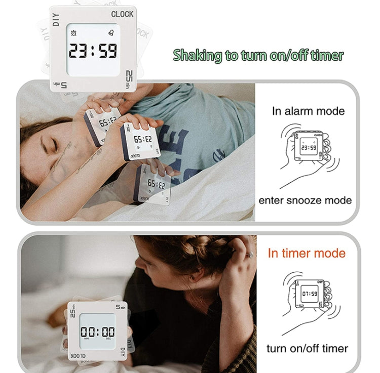 2. Flip display on all sides, turn clockwise to clock, DIY custom timer, 5-minute timer, 25-minute timer. (All timings are started or paused by shaking the product, and there is no button operation throughout the process, eliminating your tedious time setting)